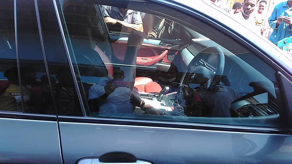 Kadewere in his BMW x6 portrayed his humble side by greeting the crowd who were asking for favors like being taken selfies with him, jerseys and money.